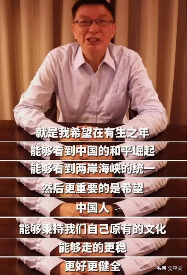在台湾大学的课堂上,听闻有学生来自大陆,他便直抒胸臆:"感动得不得了!"他甚至不认为大陆只是他的祖国,而是"我们的祖国"。