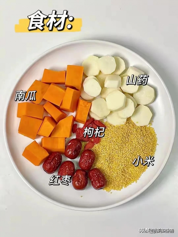 南瓜小米粥最简单,南瓜切块和小米一起熬,软糯香甜还能促进消化。