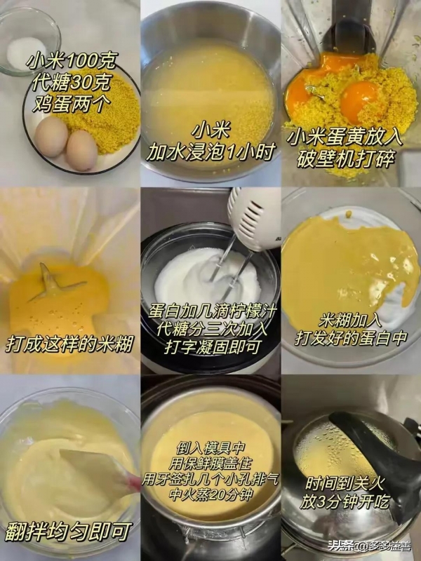 小米提前泡软打浆,加点红枣碎蒸20分钟,比外面卖的糕点健康多了。