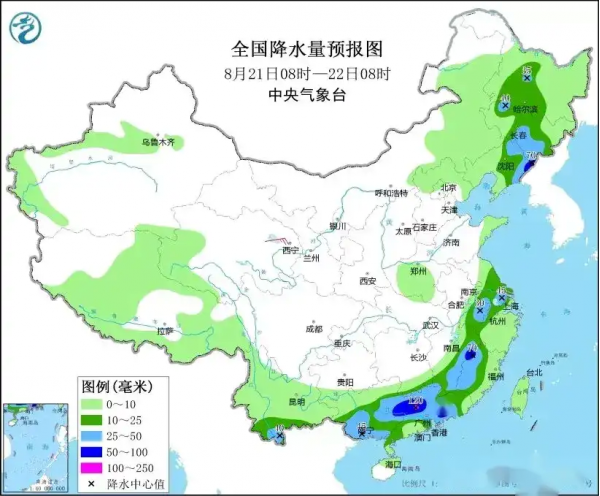根据气象部门的最新消息,受云雀外围环流和冷空气共同影响,8月21日降雨分布涵盖云南、广西、广东、湖南、江西、福建、浙江、上海、江苏、安徽、辽宁、吉林、黑龙江等地,局地有暴雨及大暴雨,累积降雨量可达100~120毫米。