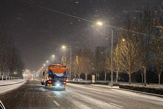 严格落实应急响应措施,应急队伍及扫雪除冰物资、机械设备全部热备待命,并对辖区桥梁坡道等重点路段和重点区域进行巡查,确保积雪结冰问题第一时间感知,根据雪情适时调配人员和车辆开展扫雪除冰工作。在做好主干道、桥梁坡道等重点区域作业的同时,组织人员及时清理公厕周边、人行道、辅道等公共区域积雪,并在公厕出入口铺设防滑垫、设置提示牌。积极动员医院、学校等单位落实"门前三包",共同参与扫雪除冰,形成保障合力。针对夜间可能出现的道路积雪结冰情况,提前部署,重点对坡道、桥梁等主次路段预撒布环保型融雪剂,预防道路结冰。