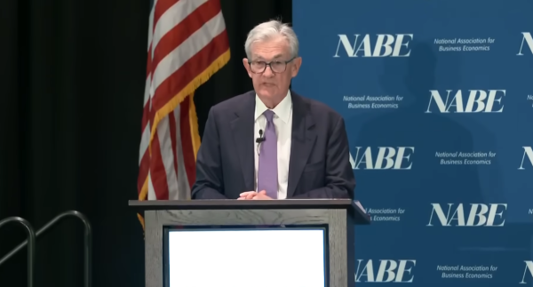 10月中旬,美联储主席鲍威尔表示美国劳动力市场的就业下行风险还在上升,暗示会进一步降息 视频截图
