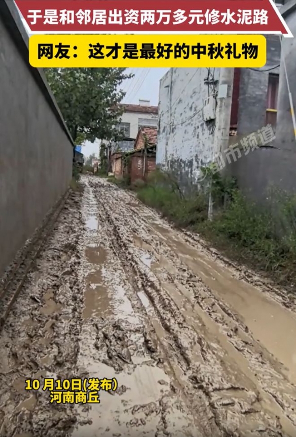 河南,男子中秋回农村老家过节,因为连日下雨,所以村里的路泥泞不堪,男子看到后觉得心里不是滋味,于是和邻居出资两万元修水泥路,在假期结束前就把路铺上,属于是一人出资,方便全村。网友:格局打开了!