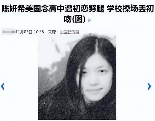 信息来源:中国新闻网《陈妍希美国念高中遭初恋劈腿 学校操场丢初吻(图)》2012-11-03