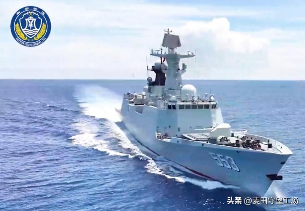 在这次公布的画面中,还可以看到054A型护卫舰调转舰炮,随时开火的画面。舷号553的054A型护卫舰,大理舰在战备警巡,还可以看到这艘054A护卫舰接受补给的镜头,这次054A护卫舰的舰炮已经脱去炮衣,进行战备状态,瞄准目标,处于随时可以开火的状态。