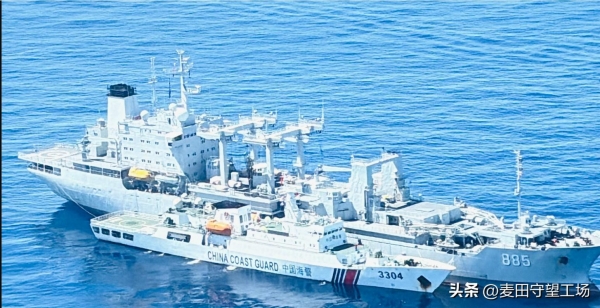 南海一线的位置距离后方的基本相当远了,为了保证执勤需求,出动补给舰给一线舰艇提供补给是非常必要的,也可以解决相当大的问题,保证一线舰艇无后顾之忧。