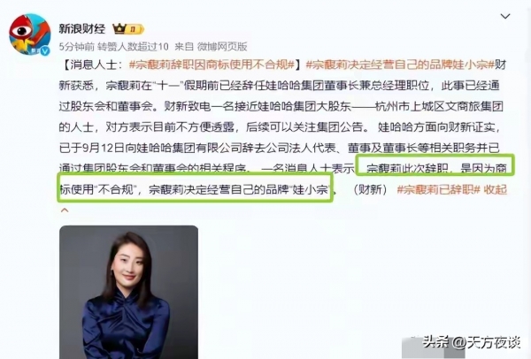 宗馥莉辞职 叔叔宗泽后:水军害了她