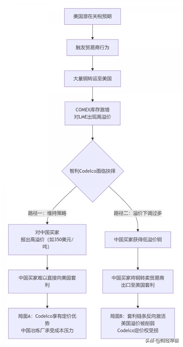 而鉴于现在美国和欧洲两地间高达数百美元的溢价,大型国际交易公司可以利用这种价差进行套利,但这套操作体系对中国冶炼厂来说却难度极高(仓库位置、时间成本、汇率成本都需要考虑在内),这才是Codelco敢于"狮子大开口"的底气,下面这张图将这个逻辑链条梳理得更清晰!