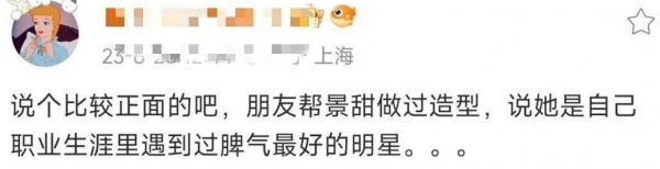 不清楚这位芭莎员工跟景甜有什么恩怨,但仅凭他一人爆料,也无法证明景甜人品不行,景甜的口碑业内有目共睹,芭莎主编才刚发了探班景甜的视频,前两天同期的瑞丽编辑也在某书上实名夸景甜,真正的工作人员对景甜都大赞特赞!如果这其中有什么误会,希望能私下解决吧,毕竟景甜也是芭莎的老熟人了,关系弄得太僵也不好看,你相信景甜是会耍大牌的人吗?