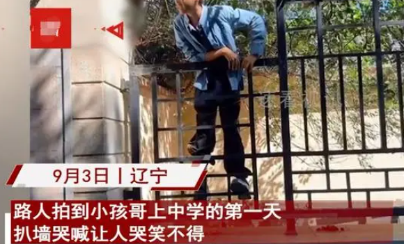 一位路人偶然间拍到一个初一新生趴在墙边,声嘶力竭地哭喊着,那模样真是让人哭笑不得。