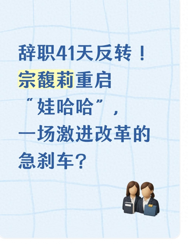 "娃小宗"品牌暂停,"娃哈哈"商标继续使用--宗馥莉在辞职仅41天后,就通过宏胜系下发通知,推翻了此前启用新品牌的决定。这个反转来得猝不及防,让这场持续380天的娃哈哈改革风波,再度陷入舆论漩涡。