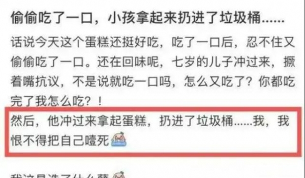 一个7岁孩子过生日,妈妈就因为多吃了一口蛋糕,孩子竟然当场把整个蛋糕都扔进了垃圾桶!