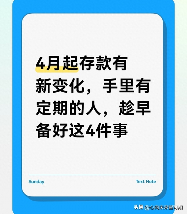 下面就说说,从4月开始,有定期存款的人,必须提前做好的4件准备,每一件都很实用,能避免你白跑网点、耽误用钱。