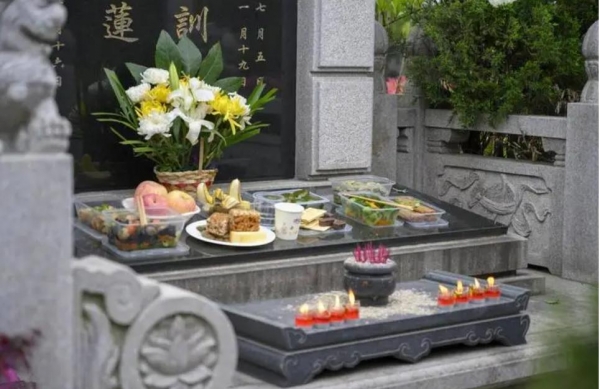 可以在墓地周围摆放一些鲜花、果品等祭品,向先人表达思念之情。
