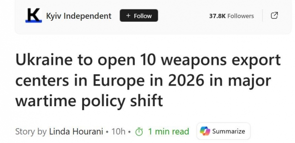 2月9日《基辅独立报》报道称,乌克兰总统弗拉基米尔·泽连斯基于2月8日在Telegram上宣布,2026年将在包括波罗的海国家和北欧国家的欧洲开设10个武器出口中心,在德国生产乌克兰无人机的项目将在2026年2月中旬开始落成生产,这是一个完全运作的生产线。在英国,类似的生产线已经在运行。这些都是乌克兰的技术,这些无人机生产、出口的利润,根据拟议的协议,将用于购买急需的其他武器装备。