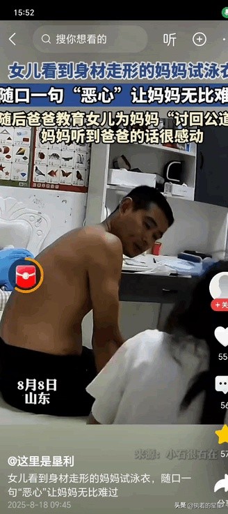 山东,一位身材走样的妈妈试穿泳衣时,却被女儿说"恶心!"