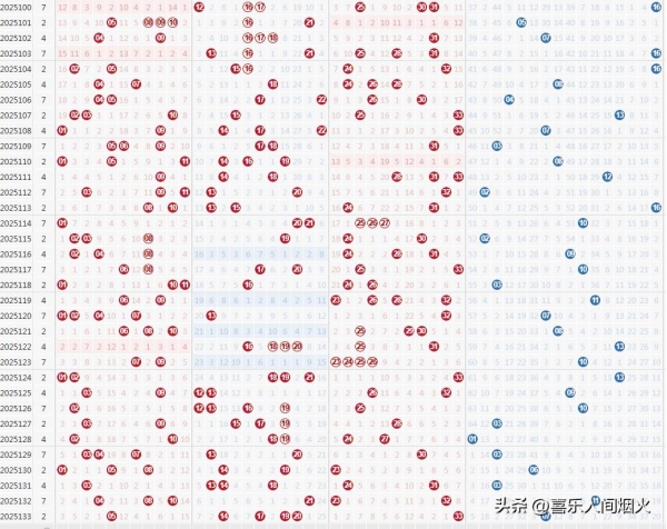 本期开奖号码,龙头5,凤尾33,跨度28点,三区比1:4:1,二区占优。本期在连号方面开出了1组连号,19号和20号分布在二区,同尾号开出组0组,重号开出0枚,从012路角度来看,开出了1枚0路号码,1枚1路号码和4枚2路号,蓝球开出7号,间隔12期再次开出。