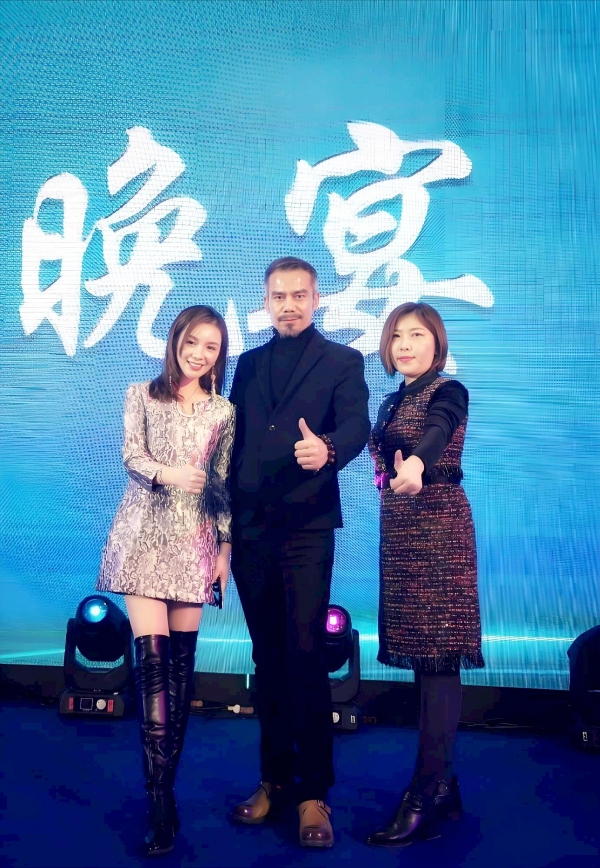 唐莉(右)与演员任青安、刘宇珽