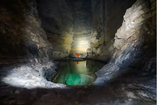 他们才发现洞穴内的景色更是美丽绝伦,因为洞穴内的水和洞穴壁构成了一道道璀璨的风景线,而洞穴内的墙壁上还有着一道道斑斓的光影,这些都让地质学家们非常兴奋。