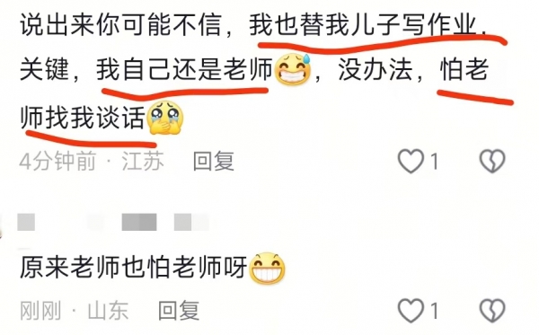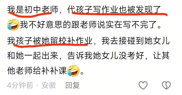 当然,还有老师也给自己的孩子赶工,怕老师找自己谈话。