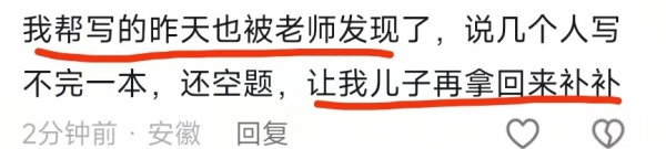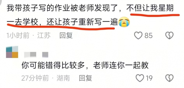 还有作为老师的家长,帮孩子赶工被发现,结果孩子还被留校了。