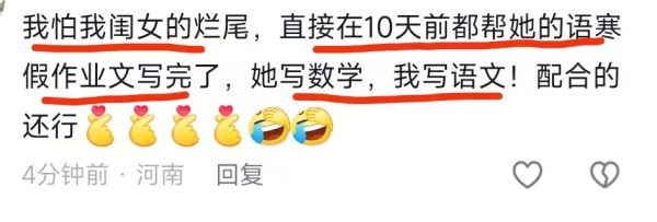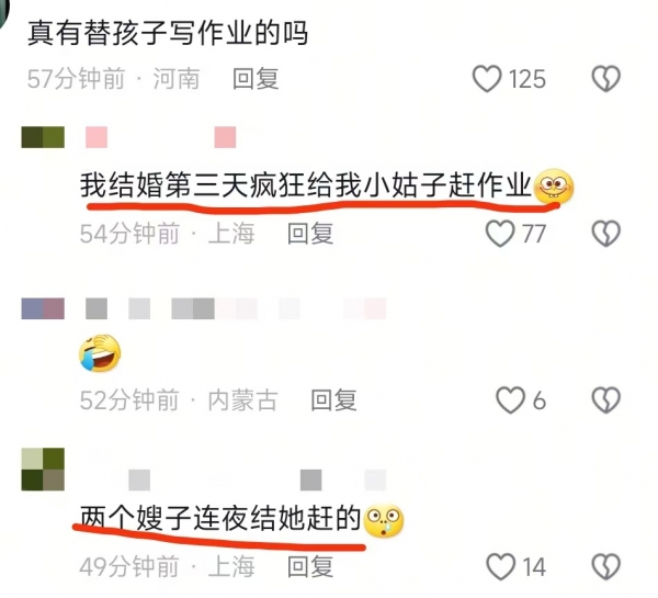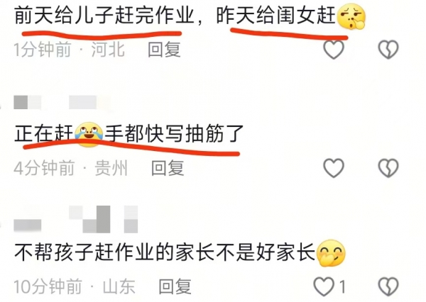 还有的网友给儿子赶完,又给闺女赶!不帮孩子赶工的不是好家长