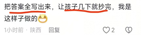 有的家长表示,自己把答案写出来,让孩子负责抄。
