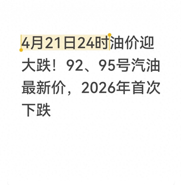 盼了整整4个月,有车一族终于等到好消息!2026年开年以来,国内油价一路"六连涨",92号汽油逼近9元大关,每次去加油站加油都忍不住心疼钱包,跑网约车、开货车的朋友更是压力倍增。就在今晚(4月21日)24时,也就是周三凌晨,国内成品油第8轮调价窗口正式开启,今年首次大幅降价确定落地。92号、95号汽油每升直降超4毛,加满一箱能省20多元,直接终结连涨态势,把油价拉回亲民区间。