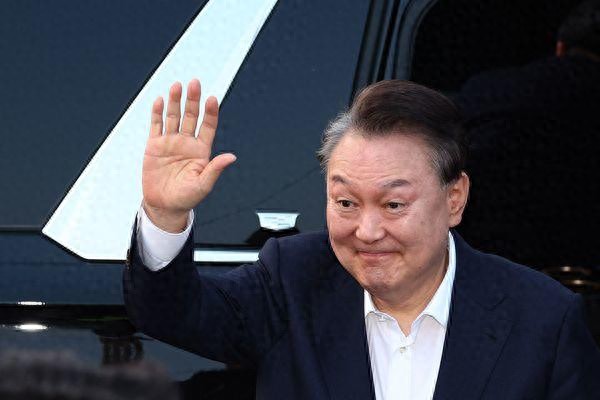 3月8日,在韩国首尔,尹锡悦返回汉南洞总统官邸后向支持者挥手致意。(新华社)