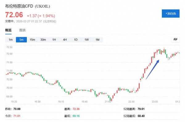 美股早盘,伊朗国家电视台报道称,与美国的部分磋商是直接进行的,伊朗不会允许铀浓缩离开本国,原油加速反弹并在早盘转涨。美股早盘尾声时,布油曾涨破72.60美元,日内涨近2.5%,美油曾涨破66.70美元,日内涨近2%。
