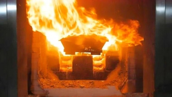 炉内温度高达能达到800到1000摄氏度,火光刺眼,遗体在高温下迅速碳化。