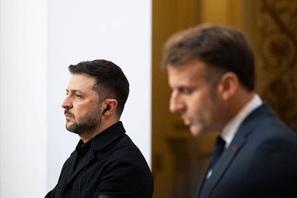 2025年11月17日,法国巴黎,法国总统马克龙和乌克兰总统泽连斯基在爱丽舍宫举行联合新闻发布会。