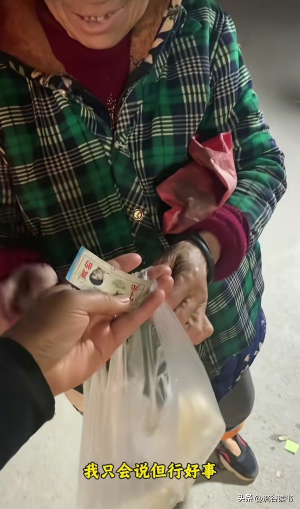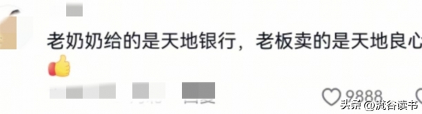 世界破破烂烂,总有人缝缝补补。视频在网上流传后,有网友说:老奶奶给的是天地银行,老板卖的是天地良心