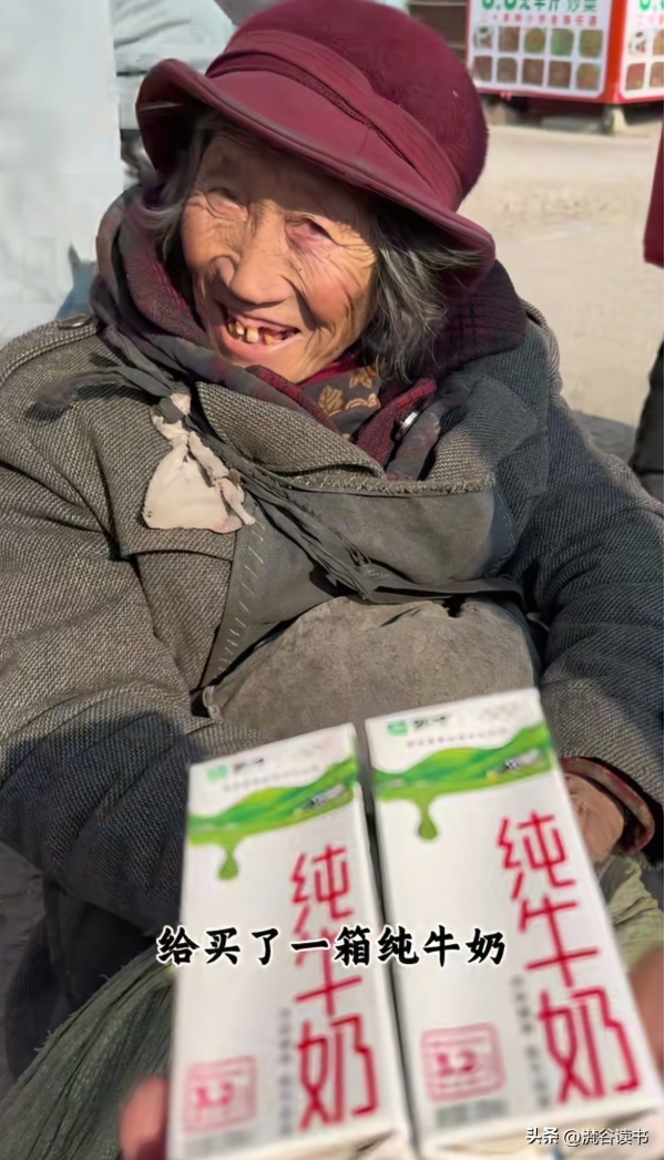 博主还给奶奶买了一箱牛奶,但担心她一次喝太多,每次给两盒(图片源于视频博主截图)
