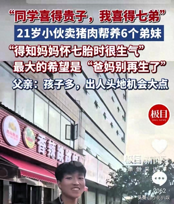他每天凌晨两点起床杀猪、分肉,然后去菜市场摆摊卖猪肉,一个人养活家里6个弟弟妹妹。可就在他拼命扛起这个家的时候,父母又生下了第七个孩子一个患有唐氏综合征的男婴。