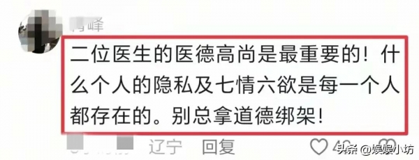 也有人说两位医生的医德高尚是最重要的,每个人的个人隐私及七情六欲是存在的,不能道德绑架。
