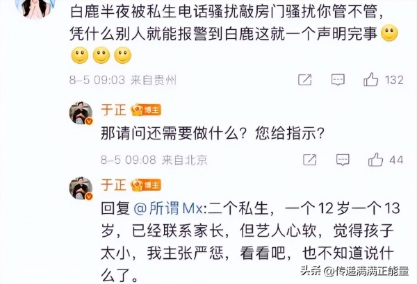 更揪心的是,白鹿本就因高压工作(曾单日拍摄21小时)饱受睡眠障碍与幻听困扰,私生的夜半骚扰无异于雪上加霜。当工作室紧急排查偷拍设备、准备更换住所时,于正的一则回应再掀波澜:**骚扰者竟是两名12、13岁的孩子!**