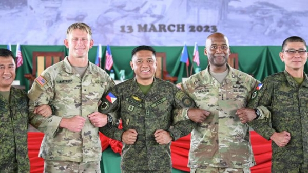 菲律宾不仅在南海兴风作浪,还引狼入室,为美国在南海的军事介入大开方便之门。马科斯政府为美军在菲律宾增设多处军事基地,并计划进一步扩建。美军在演习时部署在菲律宾的堤丰中导系统,菲律宾方面拖延不撤,甚至打算采购更多此类进攻性武器。更严重的是,菲律宾配合美国插手中国内政,妄图将台海和南海议题联动起来,对中国形成战略牵制。当解放军举行围台演训时,菲律宾竟公然扬言,一旦台海发生冲突,菲方将出兵"救援",给出的理由竟是岛内有大量菲律宾劳工。