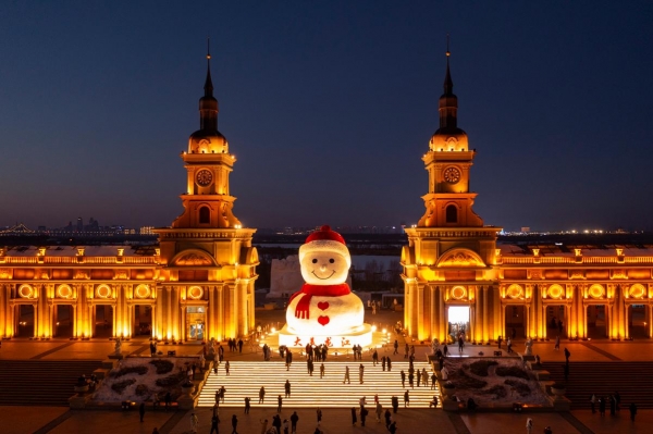 但转折点在于,今年的惊喜远不止 "变大变萌"。雪人先生解锁了 AR 互动黑科技,游客扫码就能触发光影特效,生成趣味合拍视频,夜间 LED 彩灯缠绕的红围巾点亮后,宛如流动的彩虹,梦幻感拉满。更震撼的是,尔滨直接开启 "雪人军团" 模式:外滩码头 26 米招财雪人捧着元宝送祝福,银泰城 100 个 IP 雪人组成打卡矩阵,极地公园还有企鹅造型雪雕,13 个特色雪人遍布全城,让游客实现 "雪人自由"。