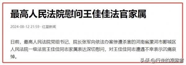 对于王佳佳的不幸遇难,极为罕见的是,最高院也慰问了王佳佳法官家属。同时还对歹徒残忍杀害法官的行为表示强烈谴责。