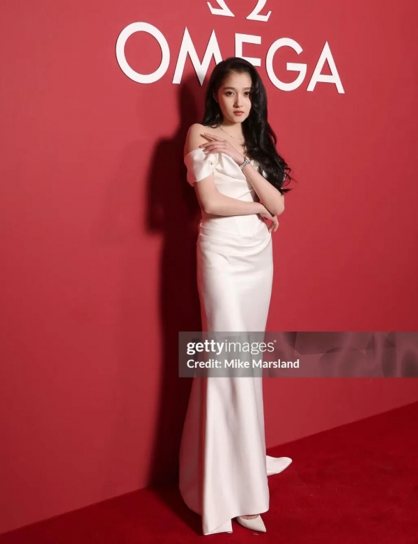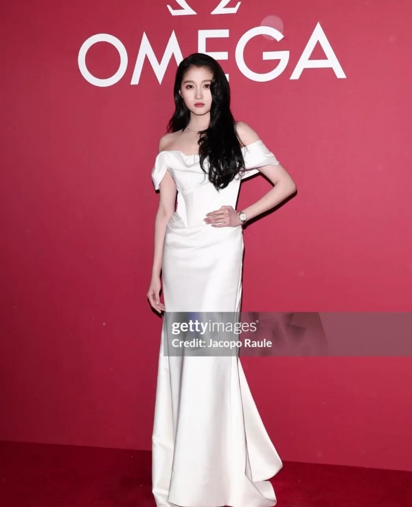 没想到这次她却给了大家一个大大的惊喜,她身穿白色的一字肩长裙,一头黑色长卷发,还佩戴了项链,再加上佩戴的手表,让她整个人看起来优雅大方。