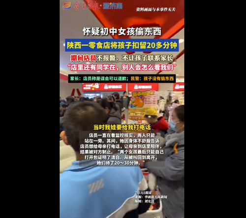 "两个女孩只有14岁,都在青春期。店里怀疑她们偷了东西,可以报警,也可以联系我们监护人到场处理。但不能是扣着孩子,不让孩子联系家长,干站着等他们调查。"