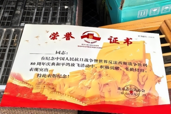 据了解,为了记录这份荣誉,北京市信鸽协会会为参与国家活动的信鸽颁发专门的荣誉证书。许多鸽主家中都有一本盖着章的"功勋簿",记录着爱鸽参与国家庆典的"履历"。