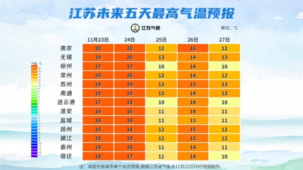 25日,受新一股冷空气影响,江苏省降温明显,到26号全省大部分地区最低气温将重回1℃上下。冷空气影响下,气温起伏较大,请适时增添衣物,谨防感冒。
