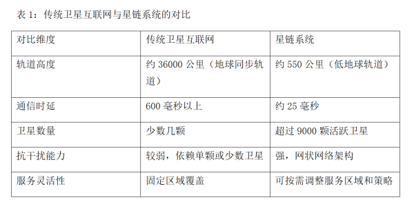 与传统卫星互联网相比,星链的技术参数体现出明显优势。传统系统往往仅由少数几颗高轨道卫星组成,而星链则通过大规模低轨道卫星星座实现全球覆盖。