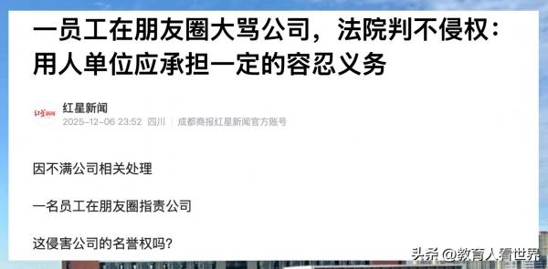 对员工来说:朋友圈吐槽不是禁区,但得讲究"基本法"。摆事实、讲道理,附上"实锤"证据(就像罗某晒出聊天截图和公司函件),这样有理有据的批评才受法律保护。相反,纯粹的辱骂不仅拉低格局,也可能真的引来麻烦。这次罗女士的个别用词,也被法院明确指出"不妥"。