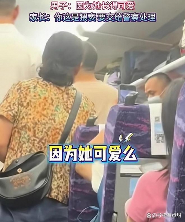 高铁上一男子对小女孩又亲又摸,男子表示,因为她长得很可爱!