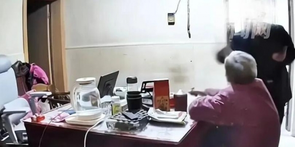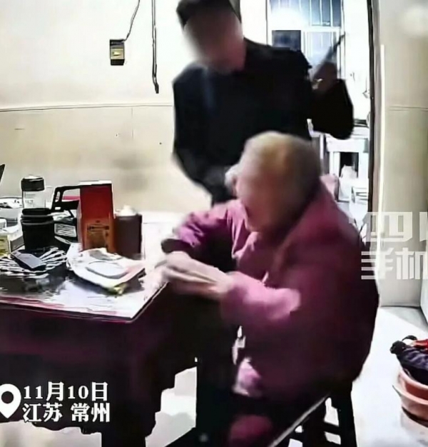 江苏一女子曝光一段监控录像,画面中一名白发老人惨遭男子殴打。