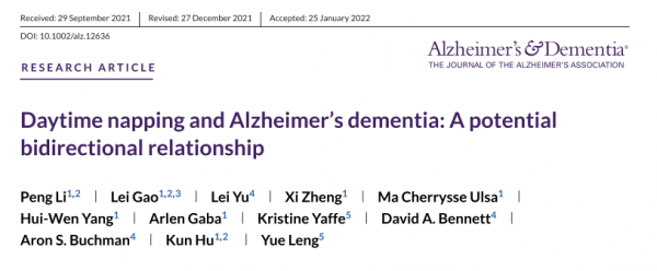 《阿尔茨海默病与痴呆》杂志上曾发表过一项研究,研究人员通过对1400人进行14年的随访,来观察白天小睡与阿尔兹海默症(老年痴呆症)相关的认知功能衰退之间的联系。