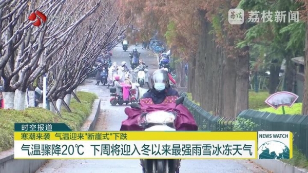 1月17日是"四九"第一天,随着冷空气的到来,江苏迎来一场从"春意盎然"到"天寒地冻"的急速反转。预计下周江苏将迎来入冬以来最强雨雪冰冻天气,气温骤降近20℃。